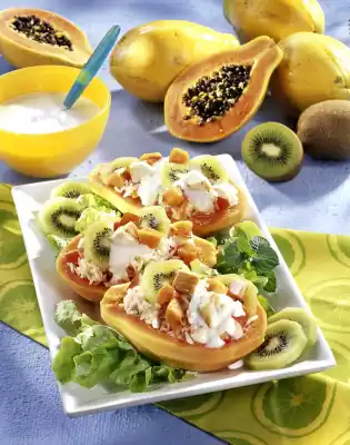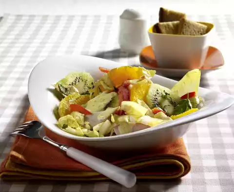 Shrimp And Herb Salad With Wholemeal Noodles And Yoghurt Dip