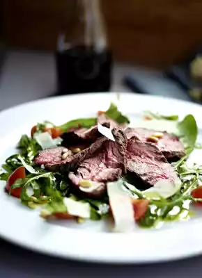 Tagliata Di Manzo On Rocket With Pine Nuts And Parmesan
