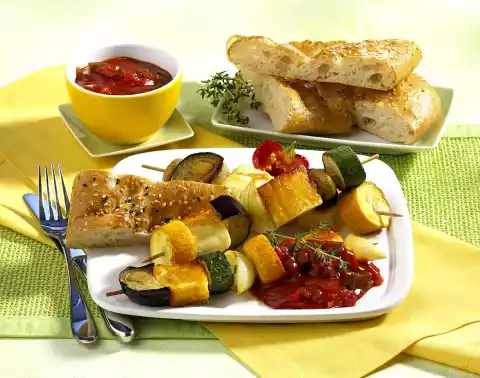 Vegetarian Halloumi Vegetable Skewers