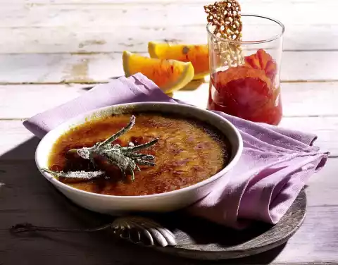 Rosemary-Creme Brulée With Orange Compote And Sesame Hips