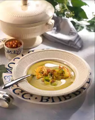 Cream Of Brussels Sprouts Soup With Small Rösti And Bacon