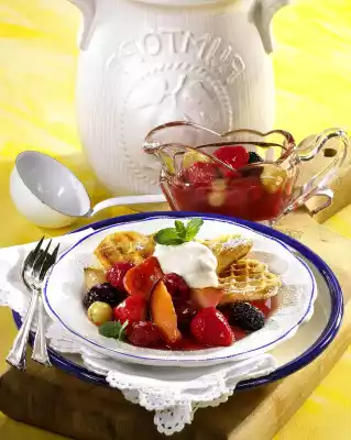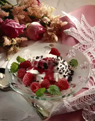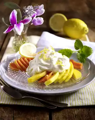 Syllabub (lemon Cream) On Mango-papaya Salad
