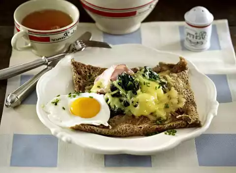 Galettes Completes (Breton Pancakes With Fried Egg, Cheese And Ham)