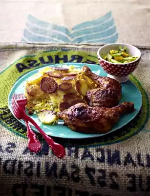 Persian Potato Rice With Chicken Legs And Mango-cucumber Salad
