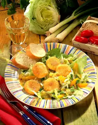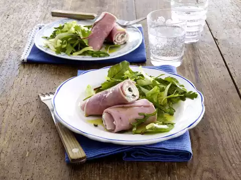 Ham Rolls With Pepper-fresh Cheese Cream On Salad