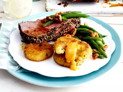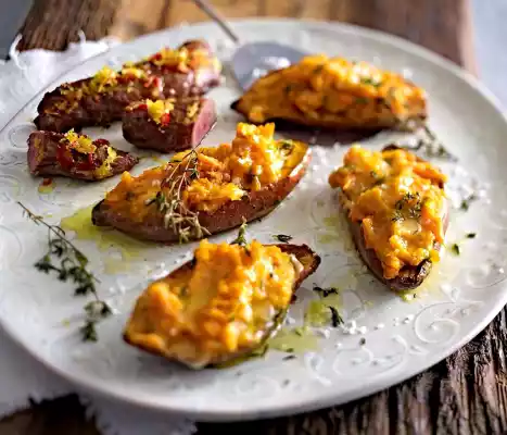 Baked Sweet Potatoes With Taleggio And Lemon Lamb Fillet