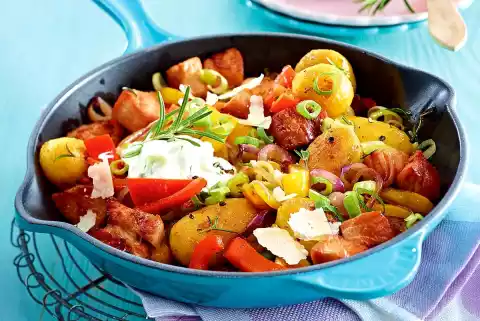 Chicken With Cucumber Curry And Roasted Potato Cubes
