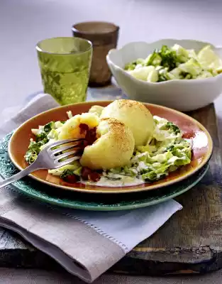 Stuffed Dumplings On Creamed Savoy Cabbage