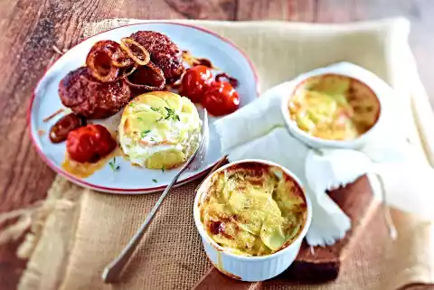 Pusztafrikadellen With Fried Onions And Potato Gratin