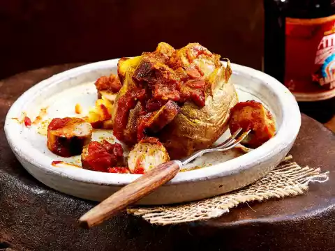 Baked Potato Zanzibar Style With Curry Sausage
