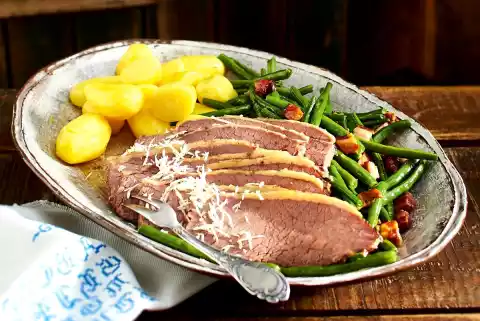 Boiling Meat With Bacon Beans And Boiled Potatoes