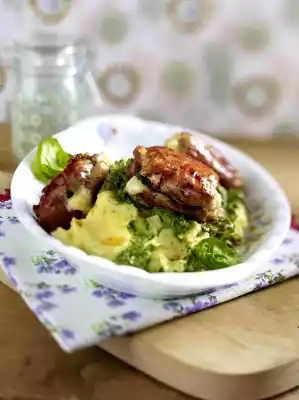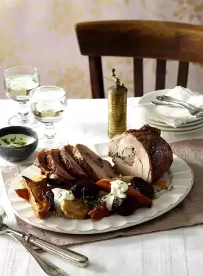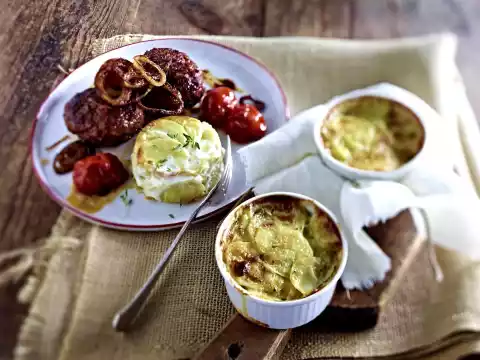 Roast Pork With Bacon Beans And Potato-leek Gratin