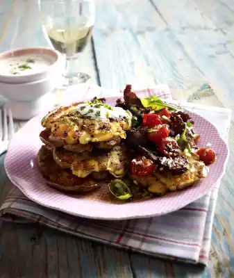 Potato Cutlet With Steak Strips And Wild Herb Dip