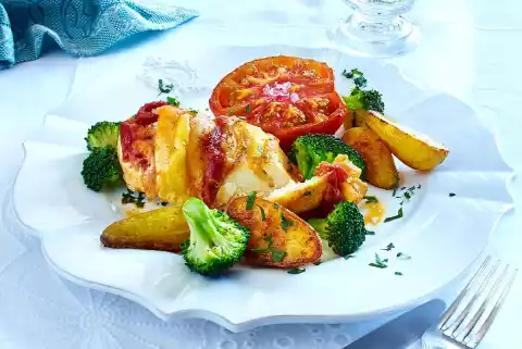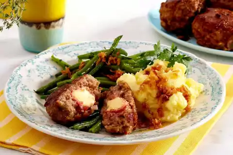 Cordon-bleu Meatballs With Green Beans And Mashed Potatoes