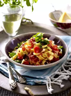 Ribbon Noodles With Tomato And Mozzarella Vinaigrette