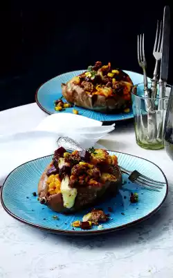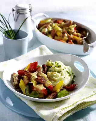 Glazed Asian Roast Pork With Beans And Mustard Potatoes