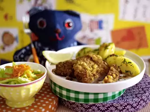 Goldbroiler With Red Cabbage-Coleslaw, Fries And Curry Mayonnaise