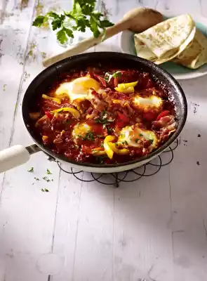 Huevos Rancheros (vegetable Pan With Fried Eggs)