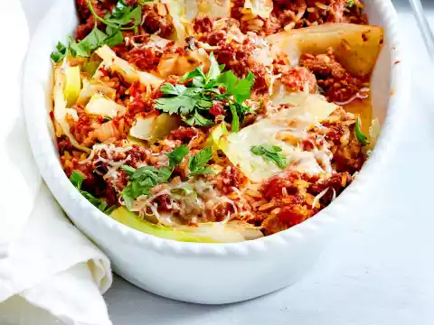 White Cabbage Minced Casserole With Goat Cheese