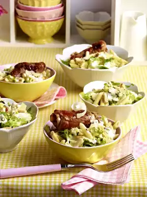 Caesar Salad With Noodles And Saltimbocca Rolls