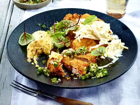 Veal Escalope In Quinoapanade With Celery Salad And Nut Butter