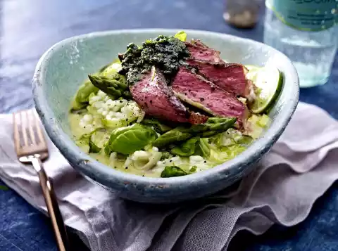 Baked Sweet Potatoes With Taleggio And Lemon Lamb Fillet