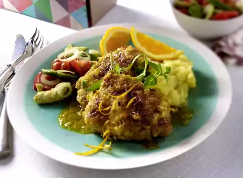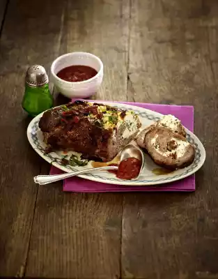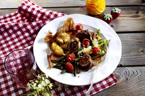 Veal Roulades With Roasted Asparagus And Baked Potatoes