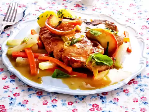 Leg Of Garlic Lamb On Thyme Oven Vegetables