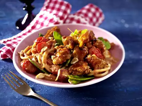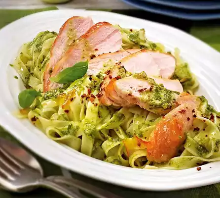 Glazed Orange Chicken With Pesto Noodles