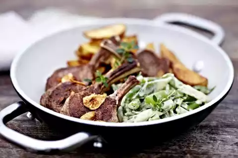 Lamb Chops With Pepper Beans And Spiced Potatoes