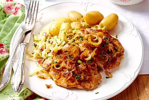 Pork Steak With Creamed Pointed Cabbage