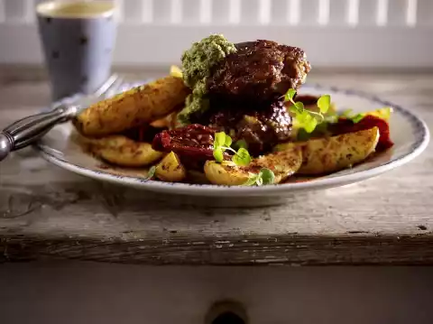 Italobulets With Countrypotatoes And Salsa Verde