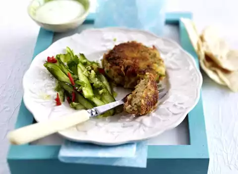 Fish Cakes With Herb-yoghurt Sauce On Watercress Salad