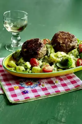 Green Potato Salad With Cordon Bleu Meatballs