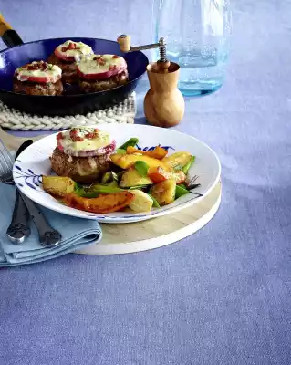 Meatballs Au Gratin With Apple And Gorgonzola On Potato-pumpkin-leek-onion-vegetables
