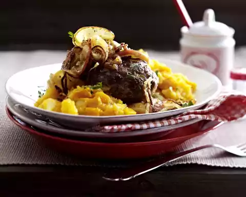 Pumpkin And Mashed Potatoes With Apple And Onion Rings For Meatballs