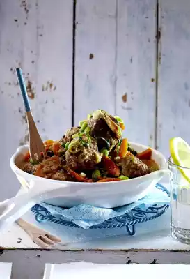 Thyme And Chili Meatballs With Noodle Salad