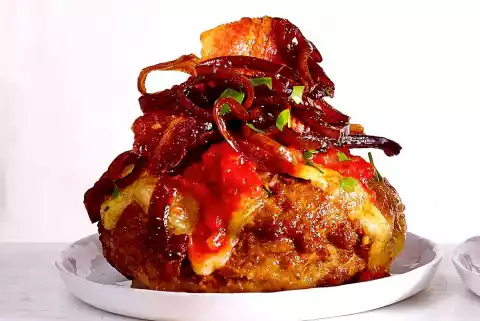 Crispy Duck With Dumpling Croquettes And Port Wine Pear