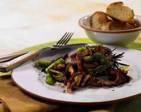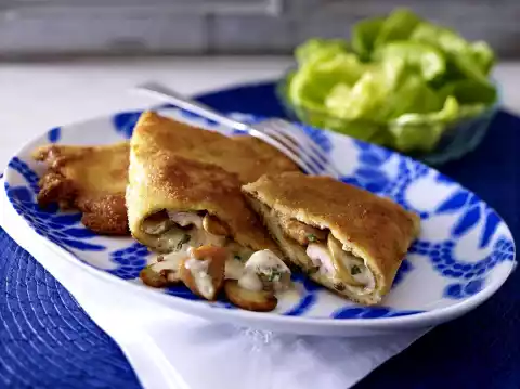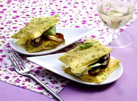 Porcini Mushrooms With Garlic Cream On Filo Pastry