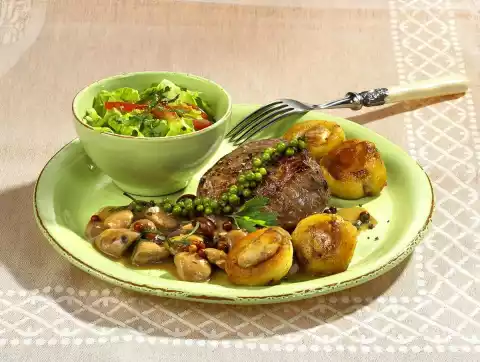 Crispy Potato-Parmesan-Rosti With Cream Mushrooms