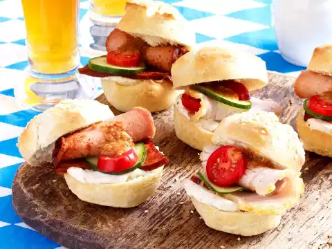 Two Kinds Of Small Rolls With Leberkäse And Roast Pork