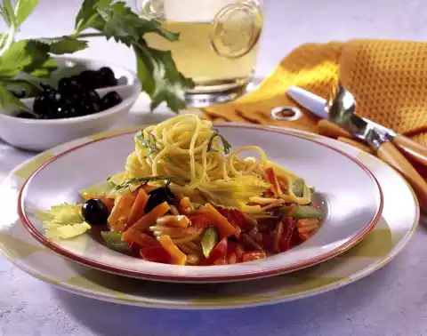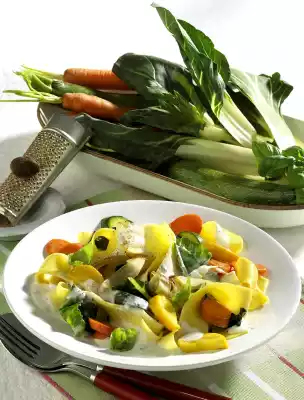 Ribbon Noodles With Vegetable And Cheese Sauce