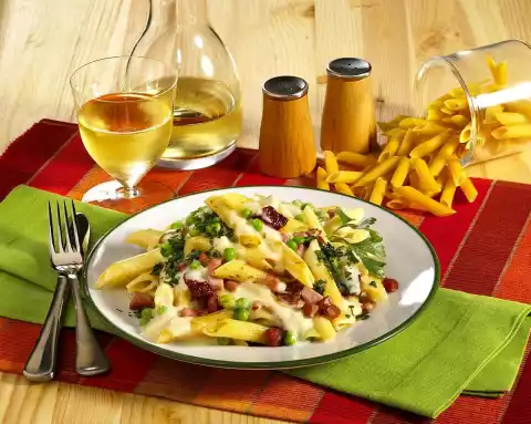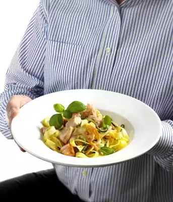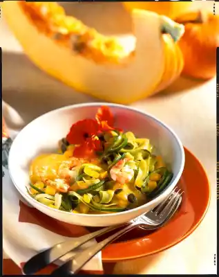 Ribbon Noodles With Scampi, Green Asparagus And Wild Garlic Cream Sauce