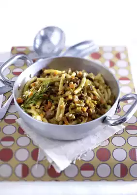 Ossobuco With Kohlrabi, Snow Peas And Lemon Noodles