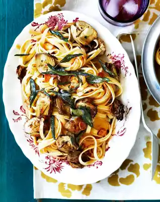 Fettuccine With Sage Butter And Roasted Artichoke Hearts