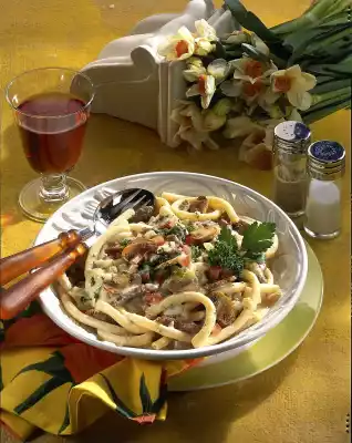 Macaroni With Pork Filet Sauce Type Stroganoff