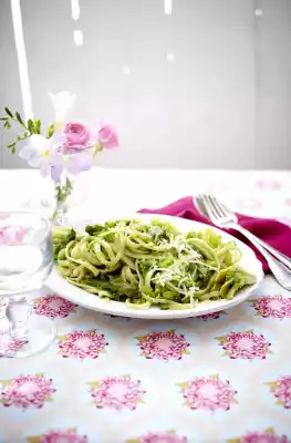 Spring Pasta With Pea Pesto And Manchego Cheese
