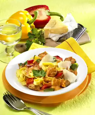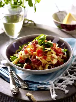 Fine Ribbon Noodles With Tomato Mozzarella Sauce And Fennel Salami