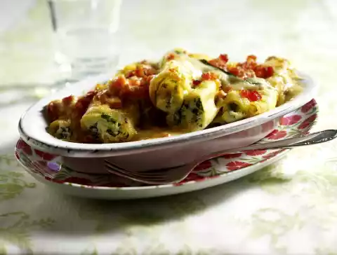 Cannelloni With Wild Garlic Ricotta Filling In Tomato Sauce