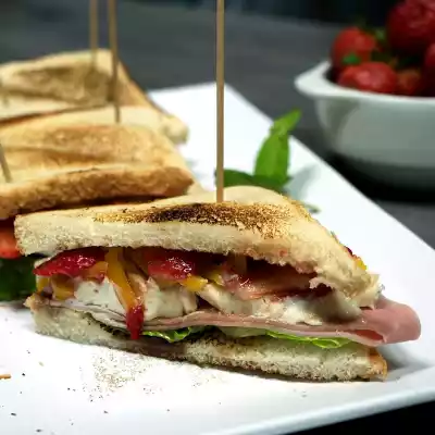 Ham Sandwich With Strawberries And Goat Cream Cheese